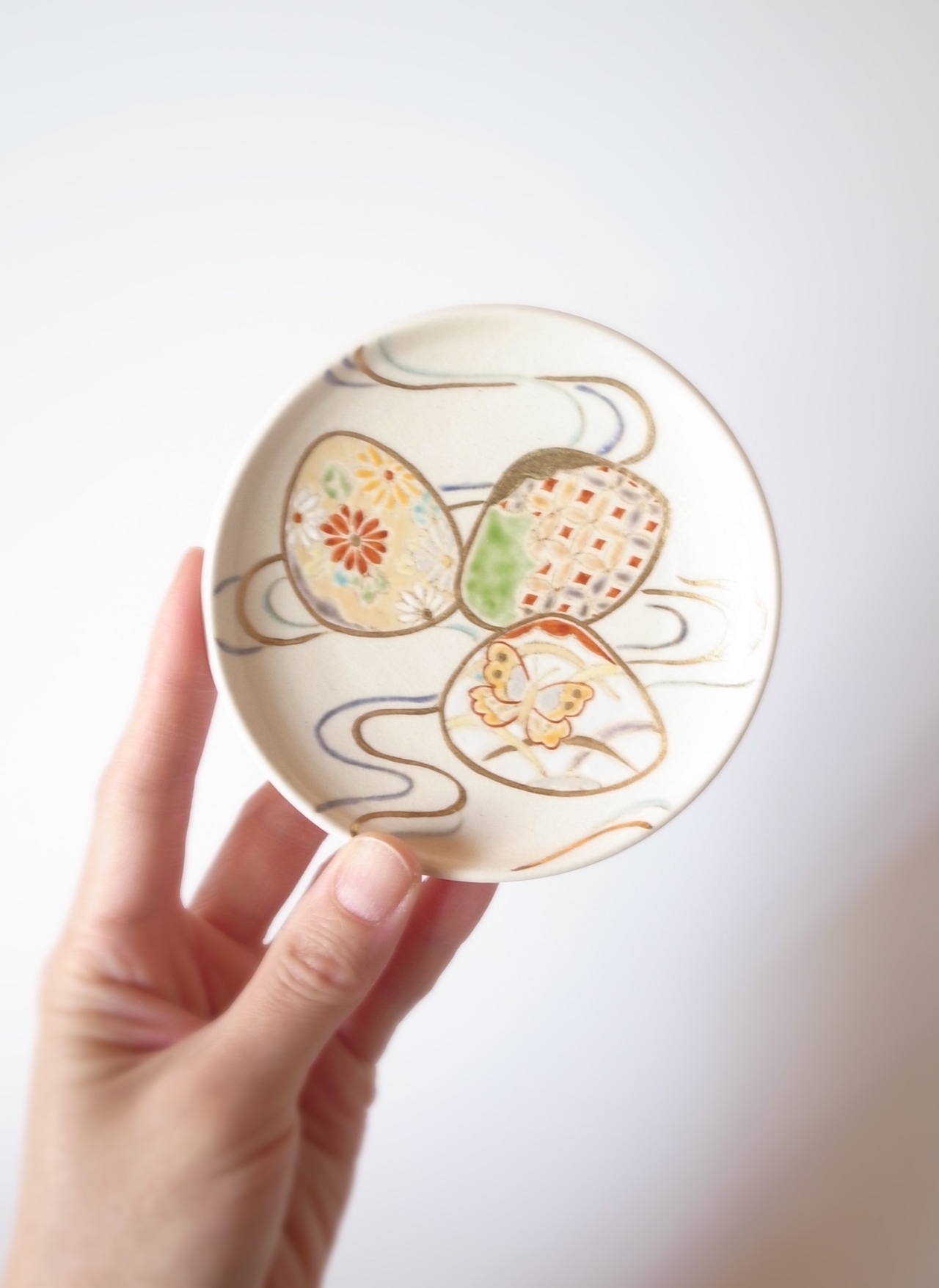 そんな図案をモチーフに豆皿を制作しました。雛祭りはもちろん、おめでたい文様として年中お使い頂けます。