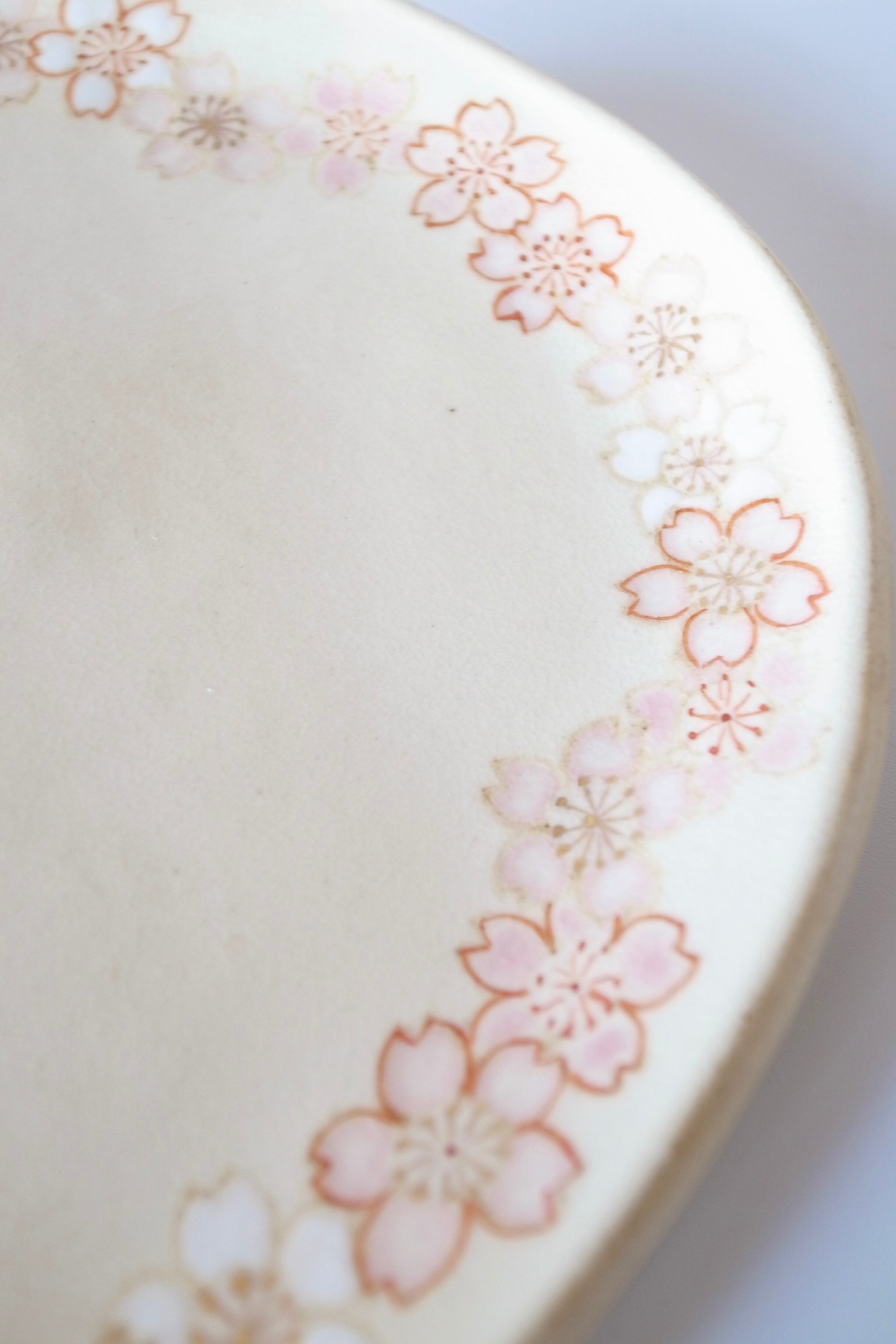 柔らかで儚げな桜の花をリース状に描いたオーバル皿です。